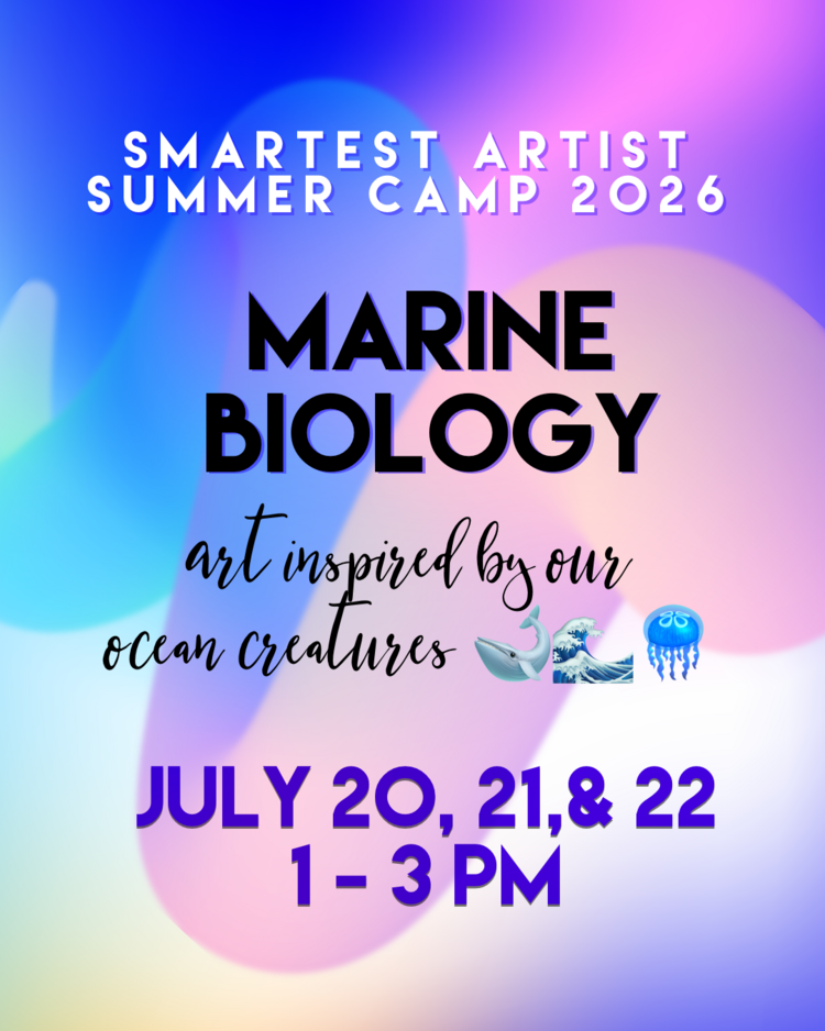 Calling all future marine biologists and ocean experts! Explore ocean ecosystems and marine life in this engaging 3-day art workshop inspired by the diversity of life beneath the waves. Students will study a variety of sea creatures and underwater environments, using observation and imagination to inform their artwork. Artists will create three ocean-themed art projects while strengthening their drawing and painting skills through observation, imagination, and creative exploration. Along the way, students will learn about marine environments, animal forms, and textures while applying the Elements of Art and Principles of Design in a fun, approachable way. Designed for children and teens, this workshop groups students by age to support appropriate pacing, skill development, and positive peer connection. Artists must be enrolled in First Grade, Fall 2026 and have graduated Kindergarten to attend.