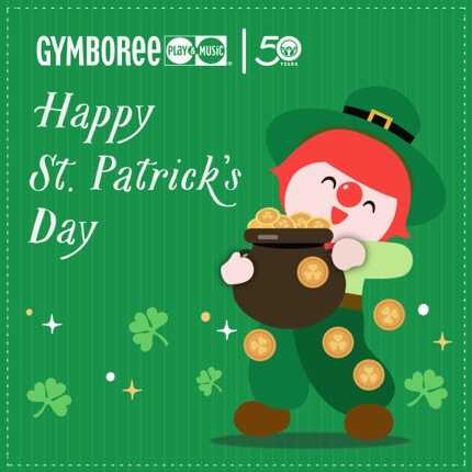 Come and celebrate St. Patrick's Day at Gymboree! Purchase the St. Pat's Party Fee listed in "Pricing Details" that suits how many children you are bringing and then make your reservation! There will be themed activities and songs, St. Patty’s themed crafts, special snacks and refreshments, a photo opportunity with Gymbo, and goody bags to go home for each child. The party will end with Gymboree’s signature parachute and bubble time too! It will be held from 10:00 a.m. to 12:00 p.m. and you are welcome to arrive and depart at will. Please try to wear green and dress your little one accordingly! Please make sure it does not have any loose glitter or beads that may fall off during play.